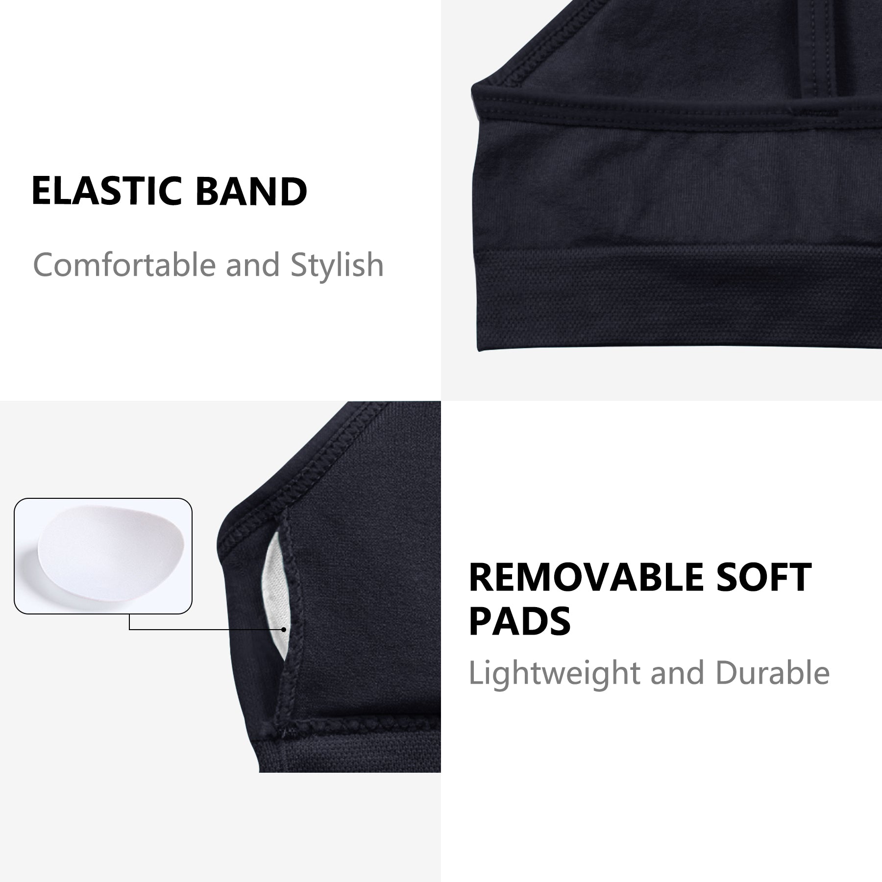 Design - These colorful and comfortable training bras feature REMOVABLE padding for added support and modesty. These bras are designed to offer great fits, maintain shape, and enhances mobility. Pullover style for convenient wear