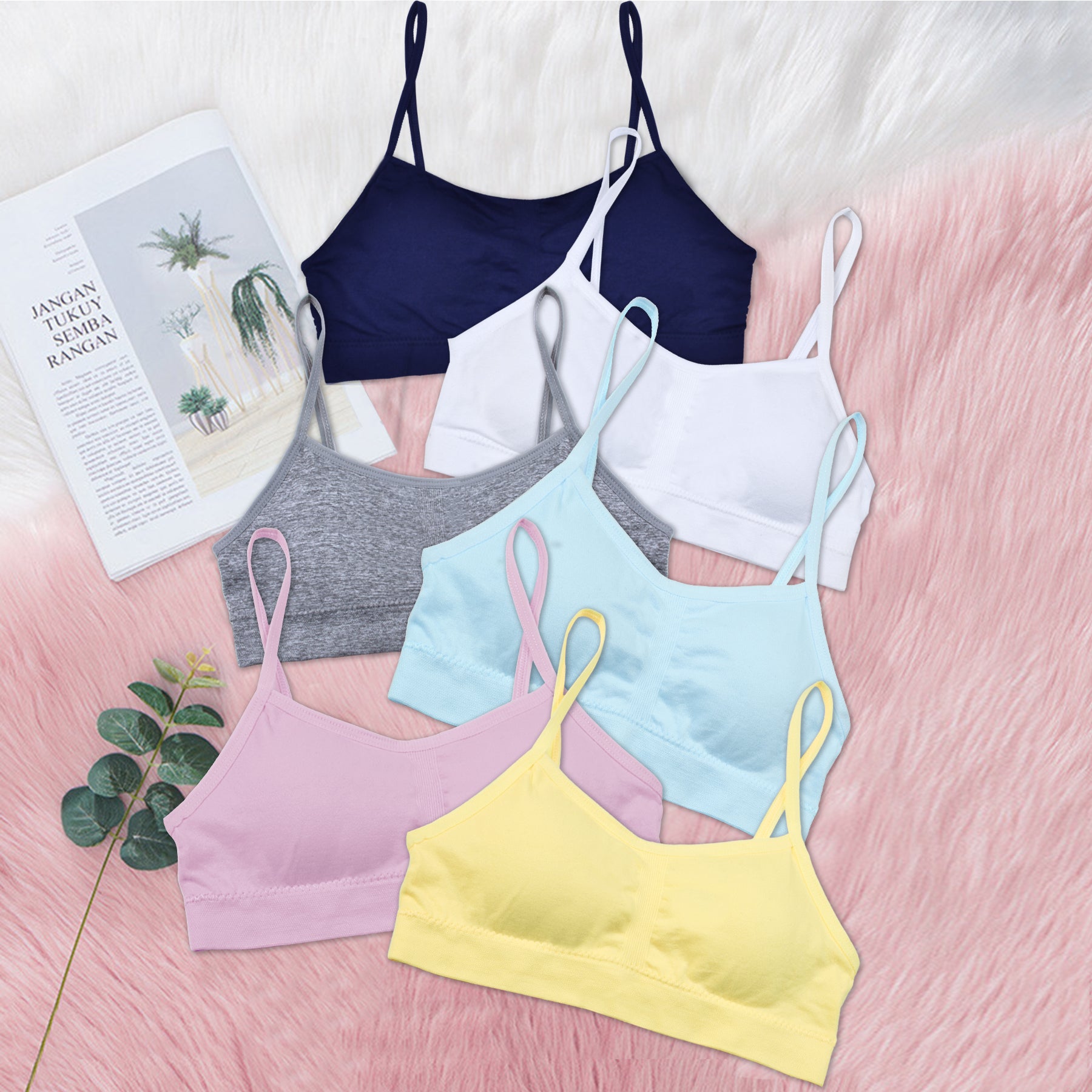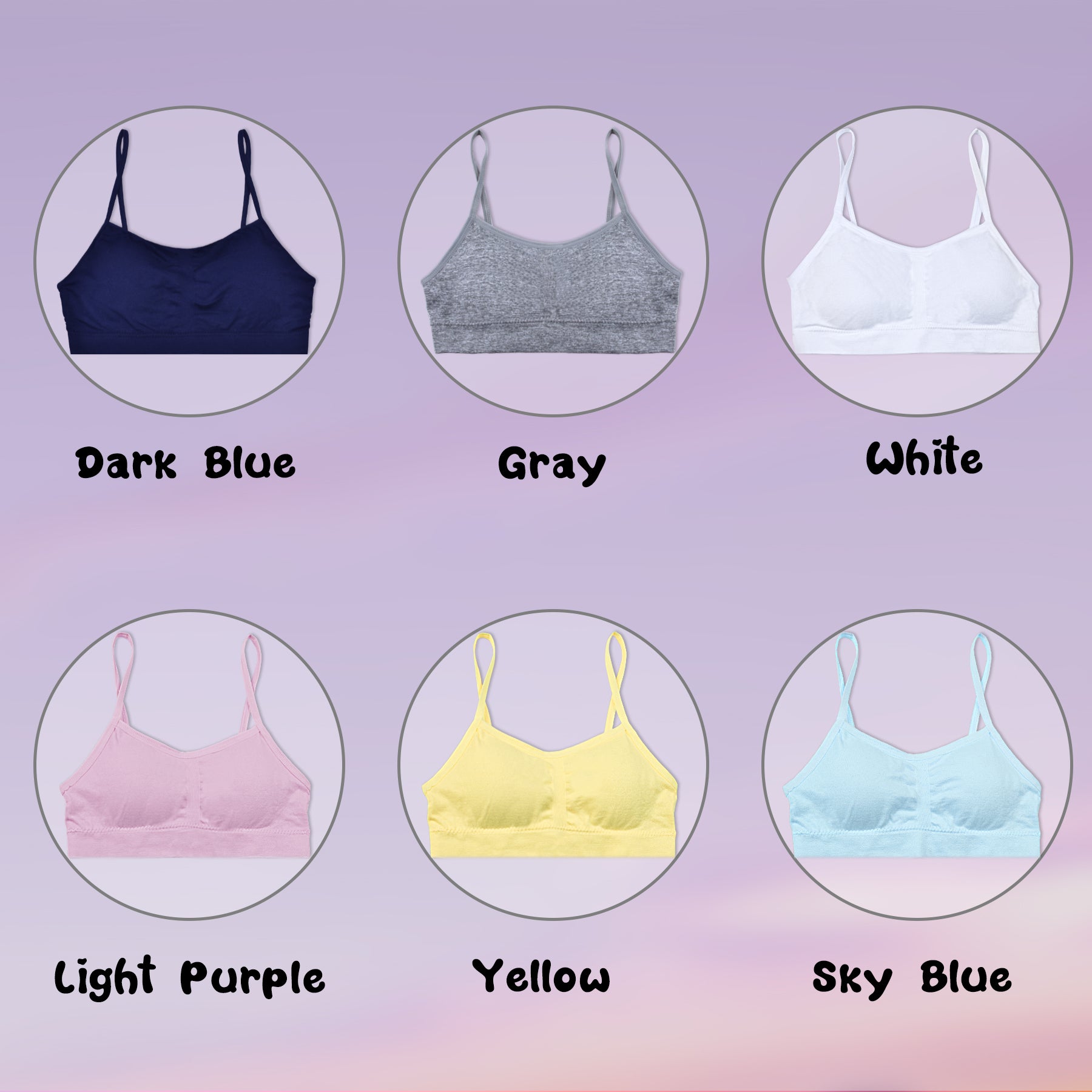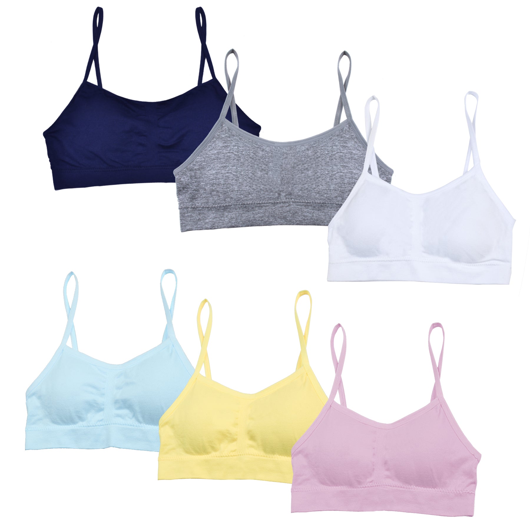 Everyday Wear – Six pieces of girls training bras are included in this pack, giving your girl a range of options and colors to choose from throughout the week. A fashionable strappy top fits perfectly under both tanks and tees