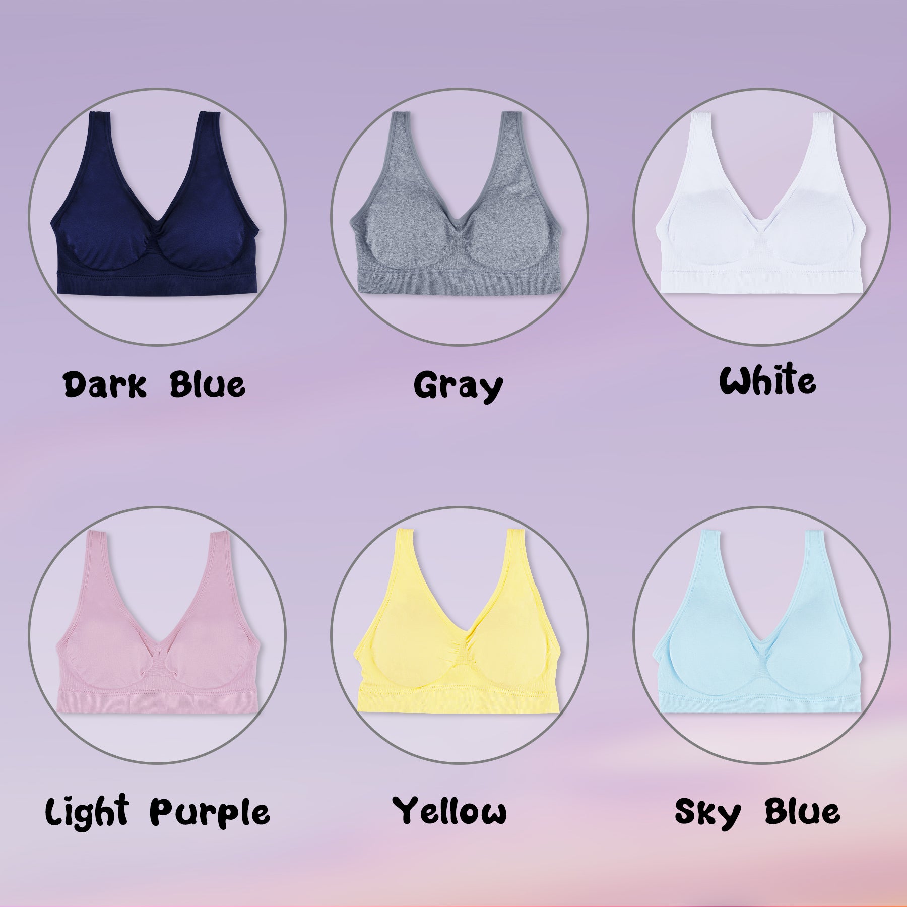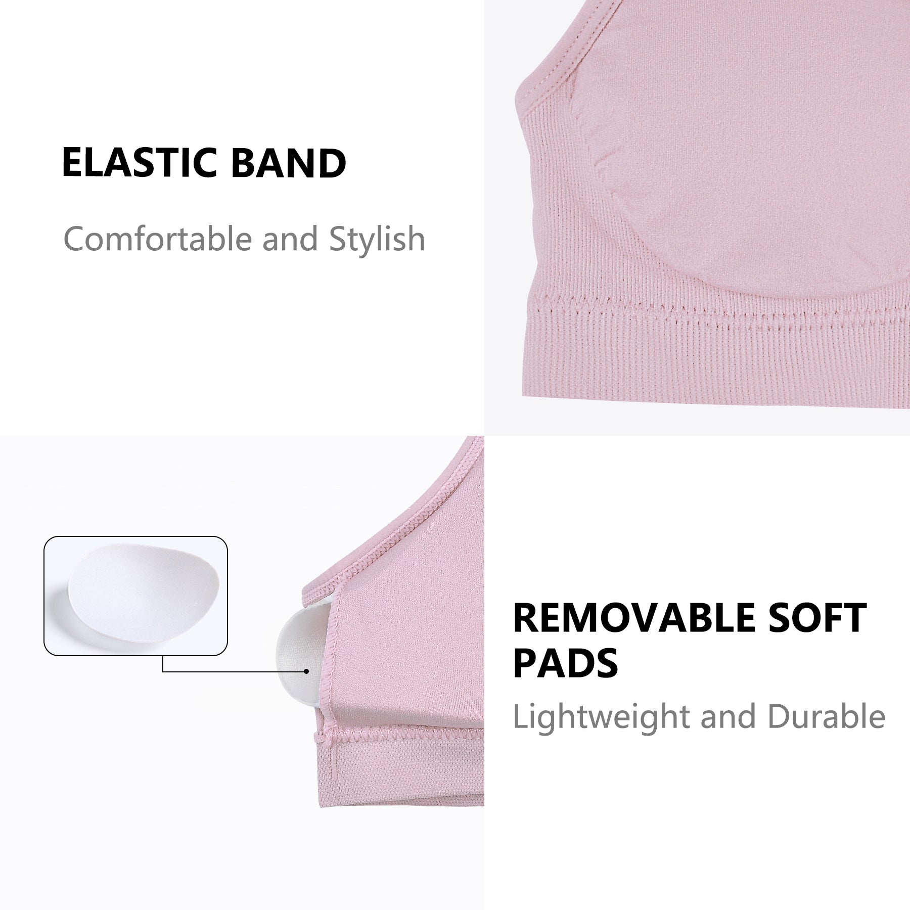 Design - These colorful and comfortable training bras feature REMOVABLE padding for added support and modesty. These bras are designed to offer great fits, maintain shape, and enhances mobility. Pullover style for convenient wear